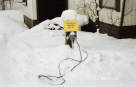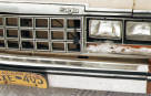 車のフロントグリルから電源プラグがでている。 中にヒータが入っている。凍結を防ぐために駐車中はコンセントに接続する。 |