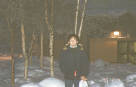 夜になって、雪道をオーロラ観測室に向かう。かなり寒い。観測室は山の中腹にあり、途中の道は真っ暗なので懐中電灯は必須。 |