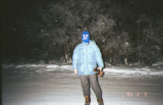 完全防備の観測態勢。フェイスマスクがないと顔がいたい。手袋をしないで金属にさわると、くっついてとれなくなるので注意。 カメラは懐に入れないと壊れることがある |