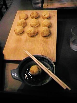 たこやきをだし汁につけて食べる