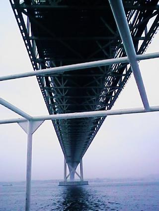 明石海峡大橋の下を通過。
