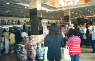 最後は土産物屋で七宝の作品を見る。 背丈よりもでかい壷を買っているおばちゃんがいた。なんに使うんだろうか?ちなみに値段は数百〜数千万もするものもある。 |