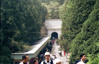 明の時代の皇帝の墓陵。こんなのが13ある。山のなかに巨大なトンネルが掘られている。とにかくでかい。 |