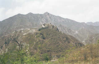 いよいよ最後に万里の長城へ。 山の上には壊れた長城が残っている。 修復してあるところ以外はすでに崩れて、 ほとんど自然にかえろうとしている。 |
