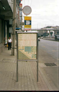 歩きつかれて、バスに乗ることにした。 路線図も時刻表もあるんだけどさっぱりよめない。バスに路線番号がないのと行き先がタイ語表記だけなのがきびしい。 |