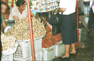 ランプータンと竜眼を売っている。どちらもライチににた味がする。キロ単位の量り売りで、100円もあれば死ぬほどたべられる。 |