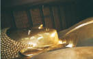 ここの仏様は横になっていらっしゃった。 写真ではわからないけど、ものすごく大きい。全身金箔で覆われている。金箔が売られていて、お参りの人が貼り付ける。 |