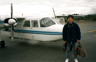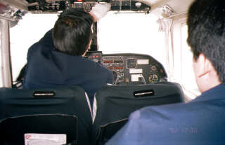 乗客は私と友人I氏の2名。座席は操縦席+客席(2×4)。バランスのため左右に分かれて座るように指示される。
