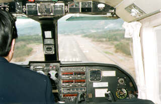 ランディング。 目前に佐渡空港の滑走路がせまる。 |