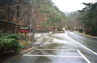 佐渡金山に到着。お客さんはだれもいない。 突然雷がなり雹(ひょう)がふりだしたので、鉱山のなかに入る。 |